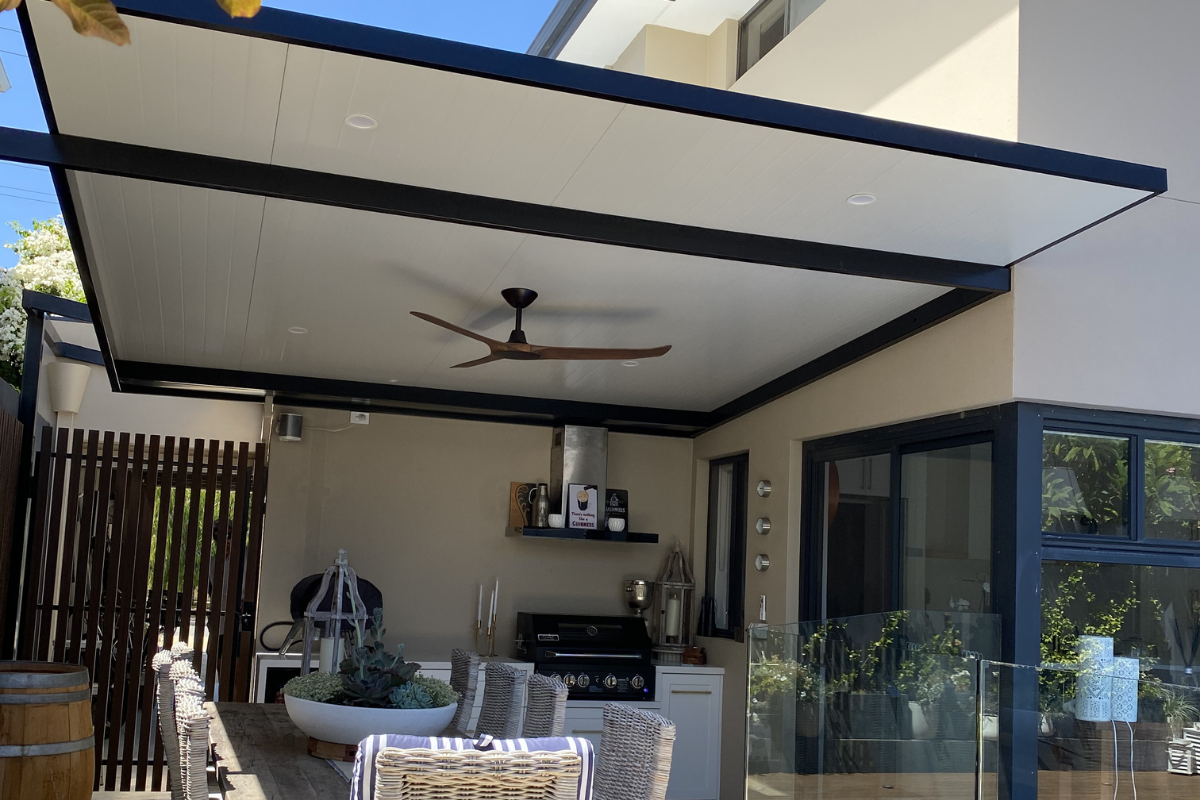 Clients are also looking for outdoor areas that feel as refined as internal spaces. This means smooth, ceiling-like finishes; integrated flush downlights; ceiling fans; feature LED lighting; and, in some cases, heaters. The structure must also visually tie in with the home’s architecture, matching or elevating the internal standard of finish and enhancing overall property value.